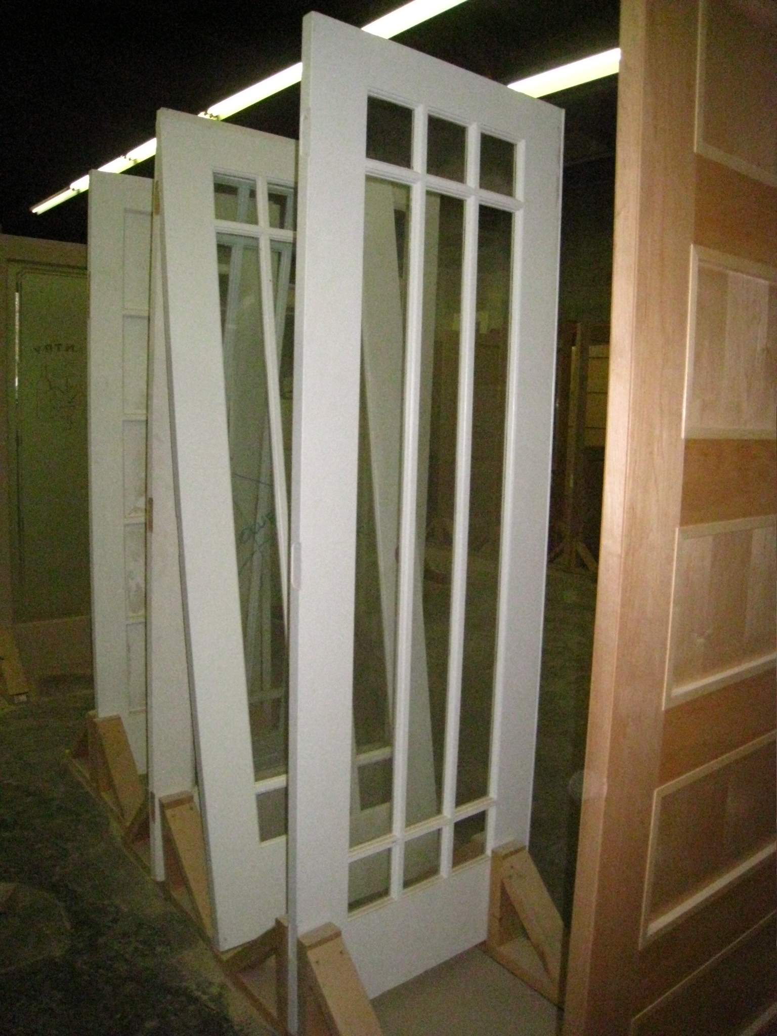 The default for interior doors is clear glass and exterior doors is low-E argon clear glass. Options include white lami, rain, granite and virtually any other type of art glass, and any combination of true divided lite bars..